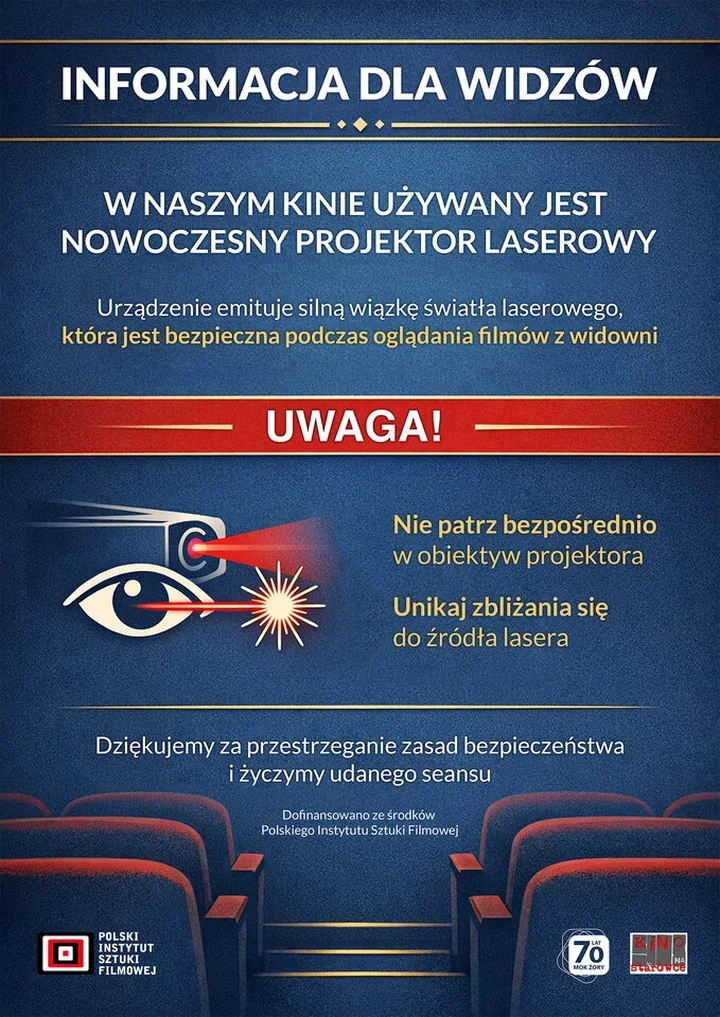 Nowa technologia pracuje z silną wiązką światła, jednak dla osób siedzących na widowni jest całkowicie bezpieczna. Warto tylko pamiętać o dwóch prostych zasadach: nie patrzeć bezpośrednio w obiektyw projektora podczas jego pracy oraz nie zbliżać się do źródła lasera w kabinie projekcyjnej.