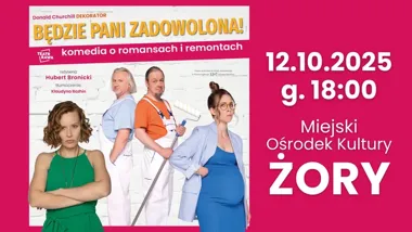 W niedzielę 12 października 2025 roku o godzinie 18:00 na scenie Miejskiego Ośrodka Kultury w Żorach zaplanowano wystawienie komedii „Będzie Pani zadowolona!”. Spektakl to lekka, sytuacyjna farsowa opowieść o romansach, nieporozumieniach i naprawach domowych, skierowana do widzów szukających rozrywki i humoru na żywo.